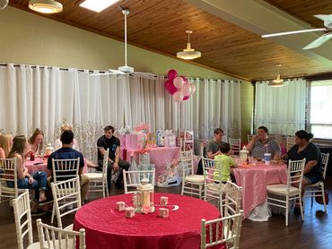We love to celebrate babies at Cobblestone! The small banquet room is the idea space for a baby shower. There is plenty of room for you and up to 40 of your guests, catering tables. gift table. and even a cake table. Our staff will be happy to cut your cake or assist in making your day special in any way we can!